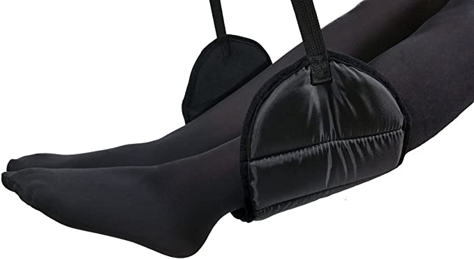 Turn any economy seat into a lounger with an adjustable footrest on long flights.
